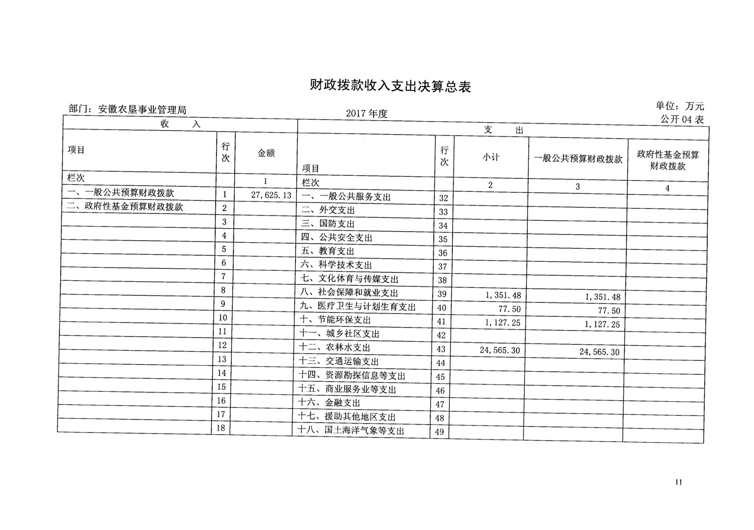 安徽省农垦事业管理局2017年部门决算情况