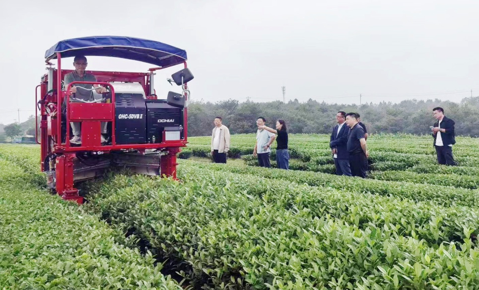 ——“”中生“智”,提升生产标准。日前,茶业集团在十字铺茶场举办“乘坐式”采茶机智能化采茶现场作业观摩。该机械每小时作业面积可高达5亩,是传统人工机采效率的10倍以上。采茶时能够根据茶树高度和冠形弧度,进行自动调节,有效控制鲜叶齐整度,达到中高端大宗茶的原料标准。该机械的投入使用,实现了茶园生产作业的机械化、精细化、标准化。茶业集团还结合茶叶生产实际,积极推行“机采+人工补采”组合模式,降低茶损率,保障茶叶品质。