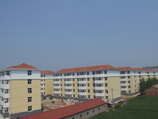 全国100个社会主义新农村建设联系点之一的龙亢农场,按照新农村建设“二十字”方针,努力“创建新农场,带动新农村”,创造条件,促进周边农民向农场城镇集中。目前,该场城镇建成区面积达到2.5平方公里,已吸纳周边乡镇1.5万余人进镇居住、就业。图为:龙亢农场新农村建设龙翔祥花园小区职工住宅楼一角。