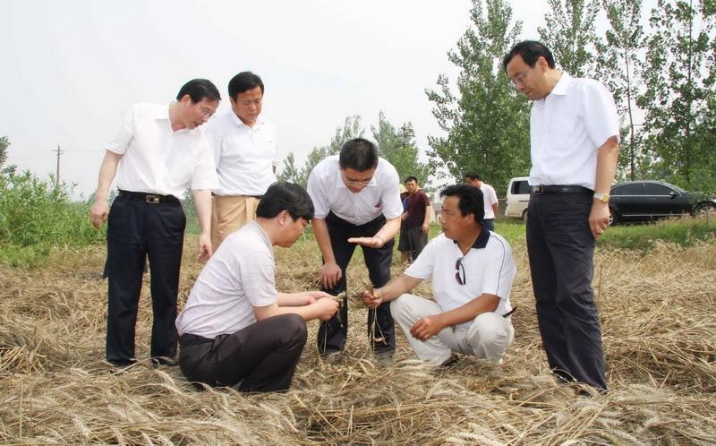 张子良董事长先后来到八、九、十、十二分场实地查看了在地小麦的受灾状况,现场听取了场领导刘国强、王苏平关于寿西湖农场遭遇飓风暴雨后3.5万亩小麦受灾损失情况的介绍。