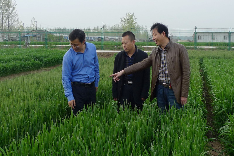 411上午,江苏省淮安市农科院赵桂东副院长来寿西湖农场交流小麦育种和大田生产,实地参观了小麦区域试验小区、种子三圃田及良种繁育基地,与农场领导朱为荣、李先金交流了近几年育种工作进展情况。赵桂东认为,寿西湖农场在地小麦群体长势良好,是高产稳产的稳固基础。