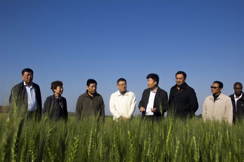 皖津公司总经理杨志猛陪同访问团参观了万亿利农场,深入田间地头察看农作物种植情况,看到农场小麦长势良好,大家纷纷点赞,预祝夺取好收成。座谈会上,访问团一行听取了杨志猛对皖津公司基本情况、运作模式、加盟企业、项目发展规划等方面的工作汇报。
