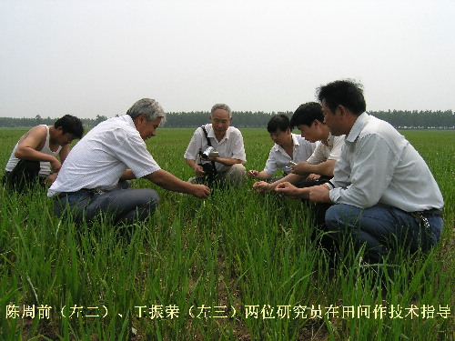 7月25日,安徽省农科院水稻所陈周前研究员和植保所王振荣研究员赶到了潘村湖农场,现场指导家庭农场职工开展灾后生产自救工作。两位专家深入田间地头仔细察看在地作物长势,就当前田间管理和下阶段病虫害防治工作向家庭农场职工做了深入浅出的辅导。家庭农场亲切地将农科院的专家称为“田保姆”。(杨登宏)