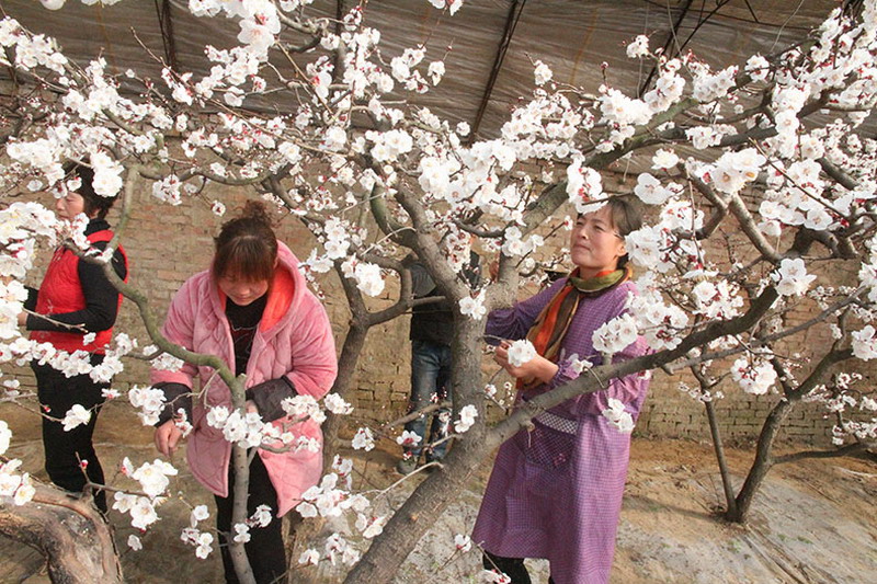 新年元旦以来,安徽砀山果园场深抓高效设施果园生产管理,为新一年职工高效农业增效增收打好基础。笔者近日走进一分场职工高效棚,见到了棚内棚外冰火两重天的景象,棚外数九严冬、寒风凛冽,棚内杏花绽放、暖意融融,职工正在忙着授粉。望着满树满枝的杏花,棚主人、省农垦高效农业三十佳职工王文萍满面春风地告诉我们:今年虽是受到不利天气影响,但场里服务到位、自家管理上心,目前杏棚树势好、生长旺、花芽多,预示着又迎来了一个丰收年。当笔者问及每个棚的收入时,正在现场指导授粉的分场技术员接茬道:她家去年一个杏棚收入3万多元,从目前园相看,今年收入还要好。王文萍赶忙说:场里政策支持好,才让我家收入一年更比一年高。据了解,全场在寒冬绽放的高效设施园共有10余亩、8个大棚。