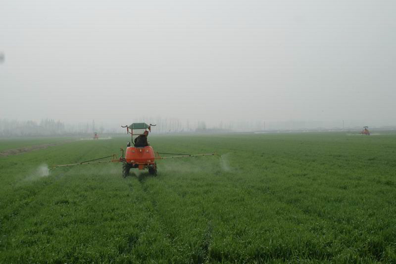 3月中旬,安徽农垦大圹圩农场三管区一片近300亩早播小麦田里,集中了4台机械施药喷肥,防治纹枯病,增施叶面肥。