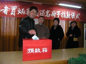 贾丙英是潘村湖农场三分场一名女职工,患肝腹水 病多年,久治未愈。岂料祸不单行,几年前,她年 仅10岁的儿子赵保忠又不幸患上同一病症,不得不 休学治病。母子俩在家人陪同下赴省内外多家医院 就医,为此花去30多万元的医药费,负债累累,家 庭生活十分拮据,贾丙英甚至向家人提出放弃对自 己的治疗,集中力量为儿子赵保忠医治。